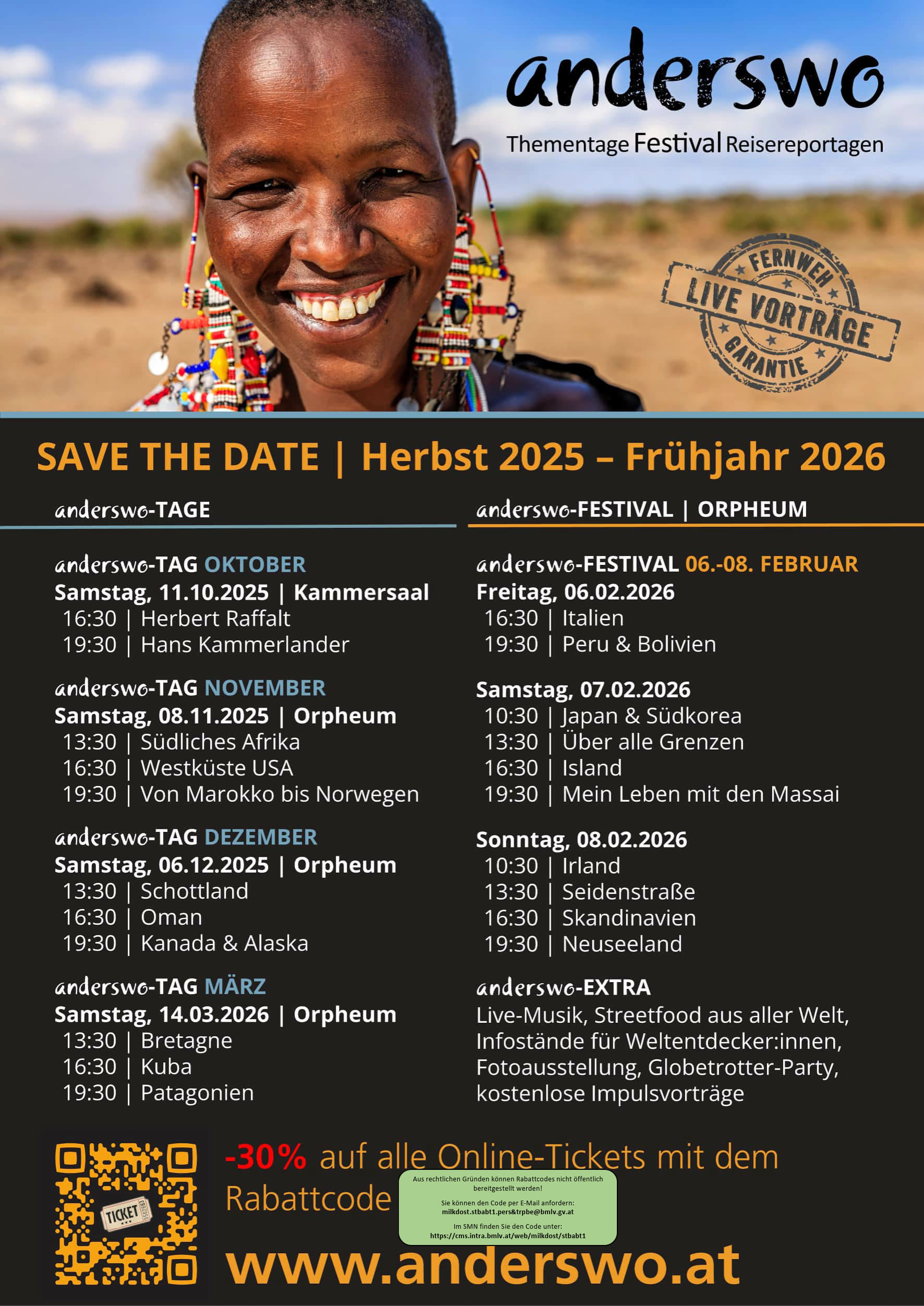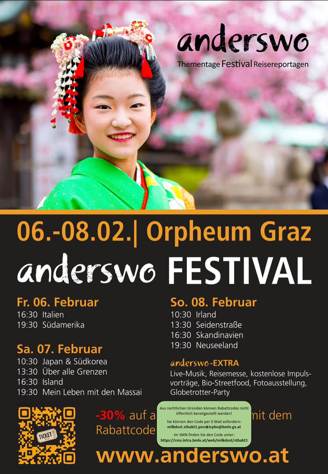 anderswo Thementage Festival Reisereportagen;-30% auf alle Online-Tickets mit dem Rabattcode;