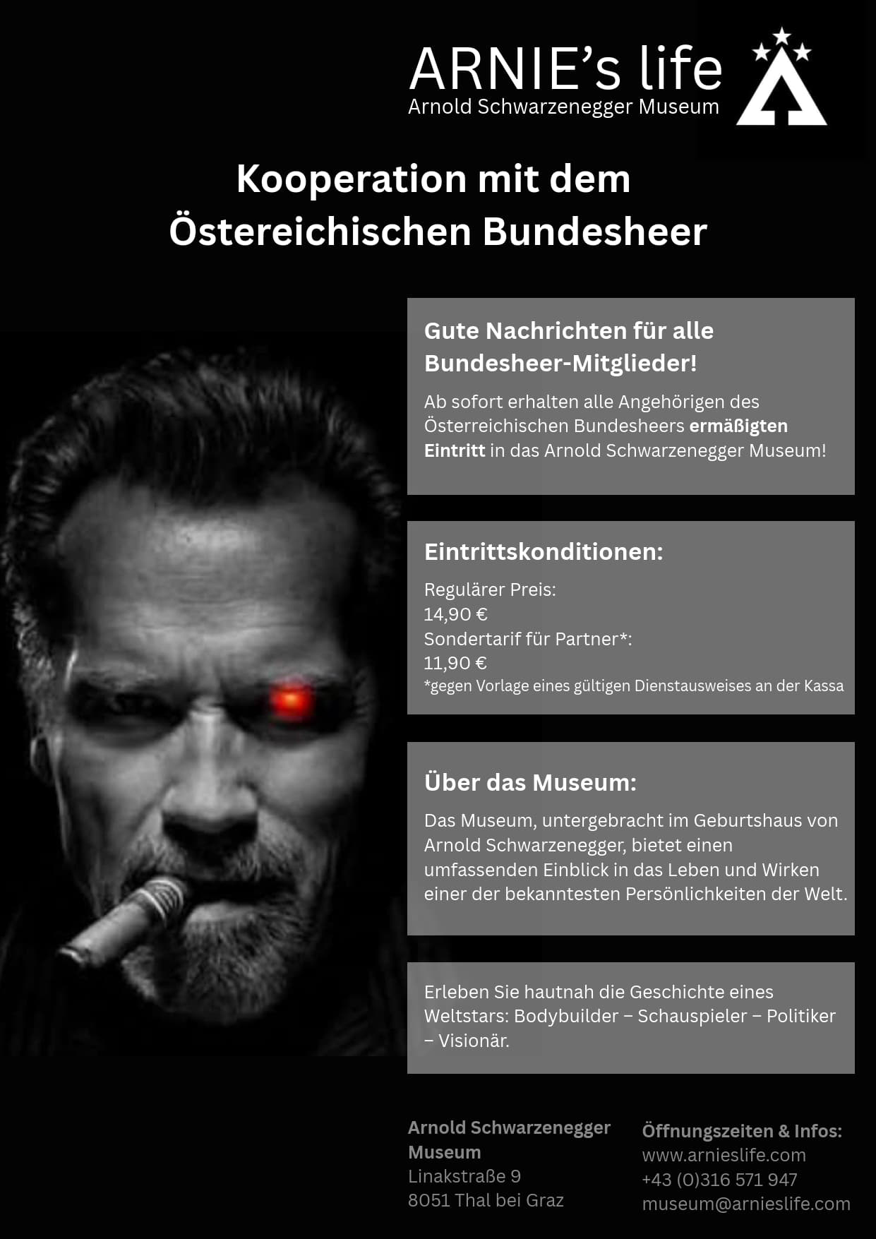 Arnold Schwarzenegger Museum; Erleben Sie hautnah die Geschichte eines Weltstars: Bodybuilder - Schauspieler - Politiker - Visionär.