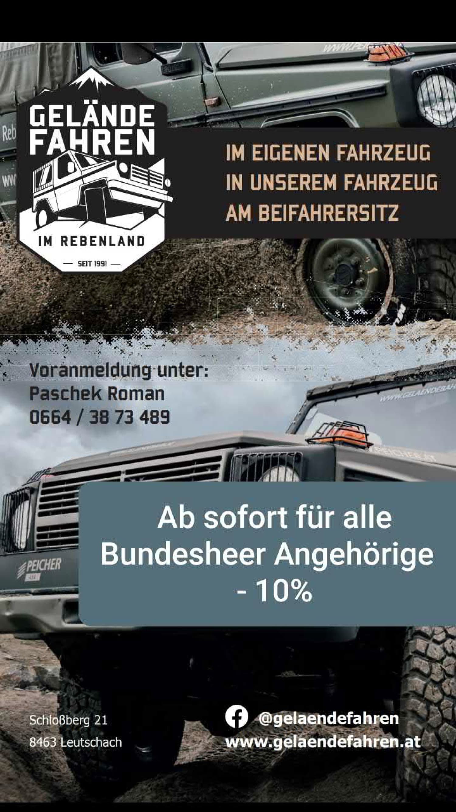 UND SO FUNKTIONIERT´s…..Nach Vorlage des Wehrdienstausweises bzw. des Dienstausweises erhaltet ihr 20% Ermäßigung auf die Arbeitszeit und 5% auf Teile Gültig:Für alle Mitarbeiter des Österreichischen B ...