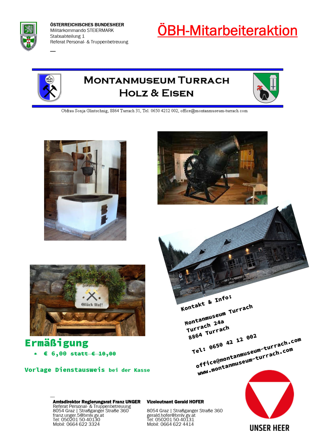 UND SO FUNKTIONIERT´s…..Nach Vorlage des Wehrdienstausweises bzw. des Dienstausweises erhaltet ihr 20% Ermäßigung auf die Arbeitszeit und 5% auf Teile Gültig:Für alle Mitarbeiter des Österreichischen B ...