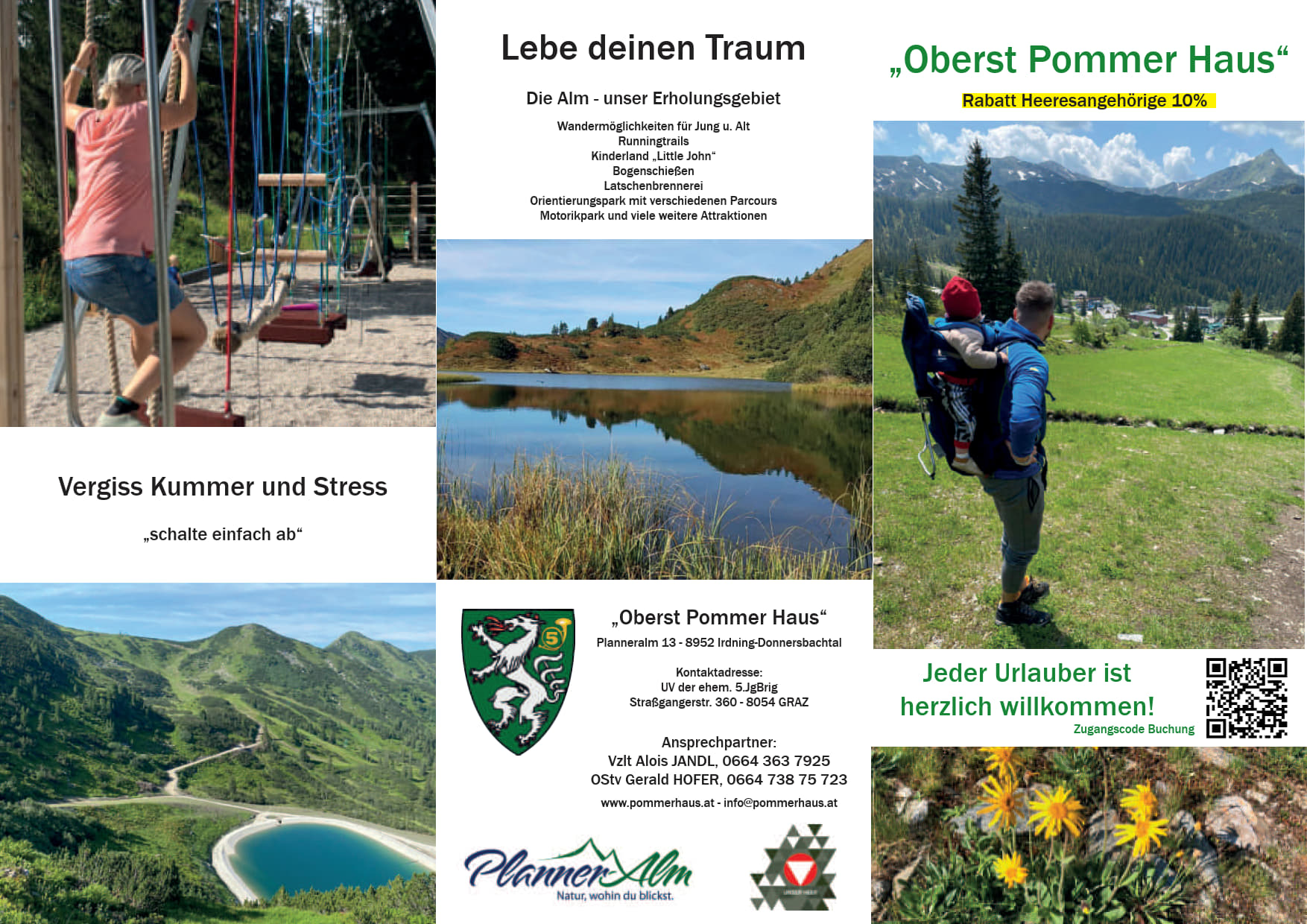 Oberst Pommer Haus; Planneralm - Betreuung