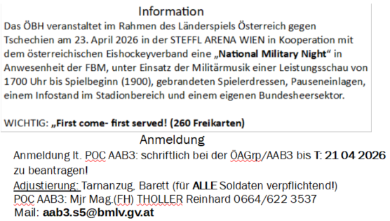 „National Military Night“ mit dem Österreichischen Eishockey Verband - ÖEHV - Betreuung