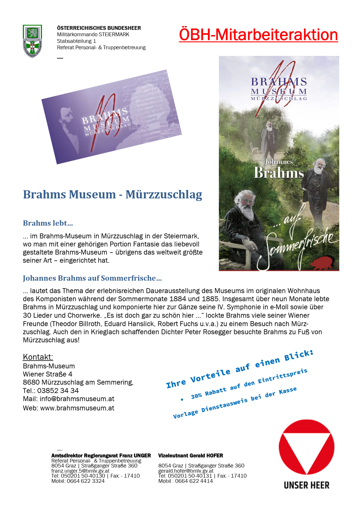 Angebot fur die Bediensteten des ÖBH für die Standorte STEGERSBACH und GÜSSING.mehr erfahren