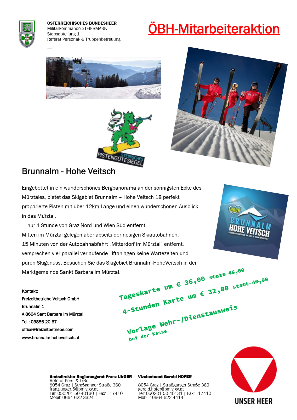 Angebot fur die Bediensteten des ÖBH für die Standorte STEGERSBACH und GÜSSING.mehr erfahren