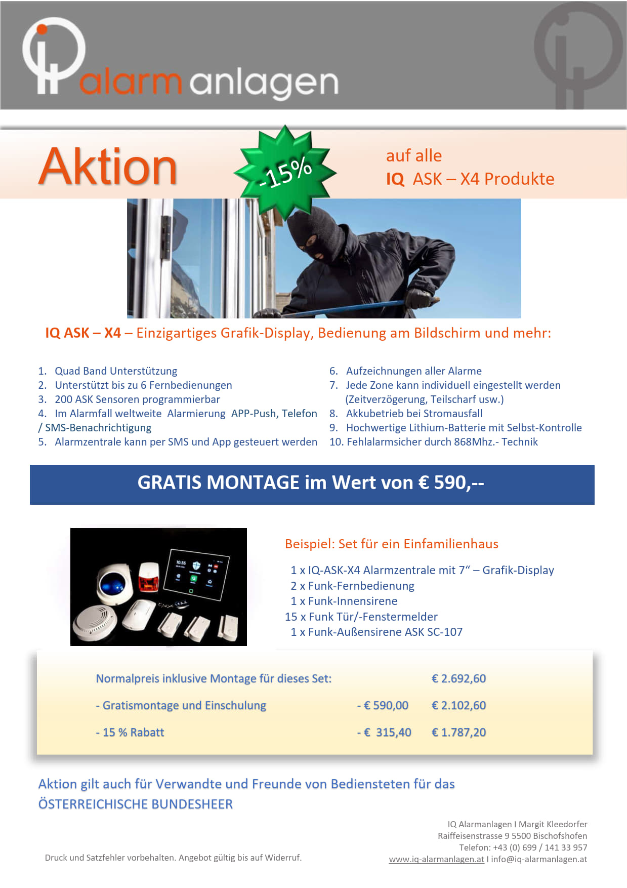 IQ Alarmanlagen;Aktion ist auch für Verwandte und Freunde von Bediensteten für das ÖBH