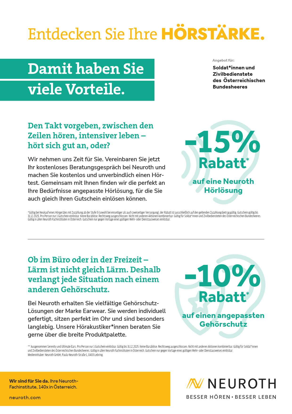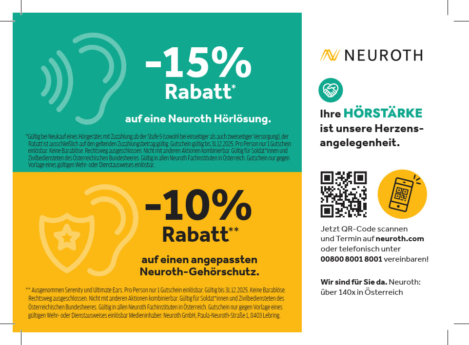 Rabatt auf eine Neuroth Hörlösung und einen angepassten Gehörschutz