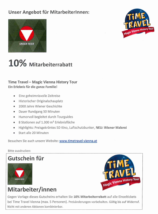 -10% auf den Eintritt! Einfach den Dienstausweis an der Kassa vorzeigen um den Nachlass zu erhalten.