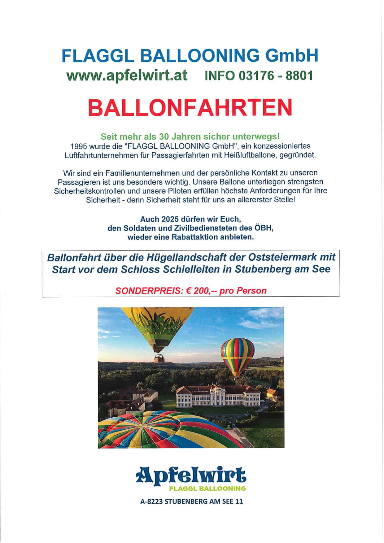 Flaggl Ballonfahrten;Sobderpreis: €200,00 pro Person;Start vor dem Schloss Schielleiten in Stubenberg am See;