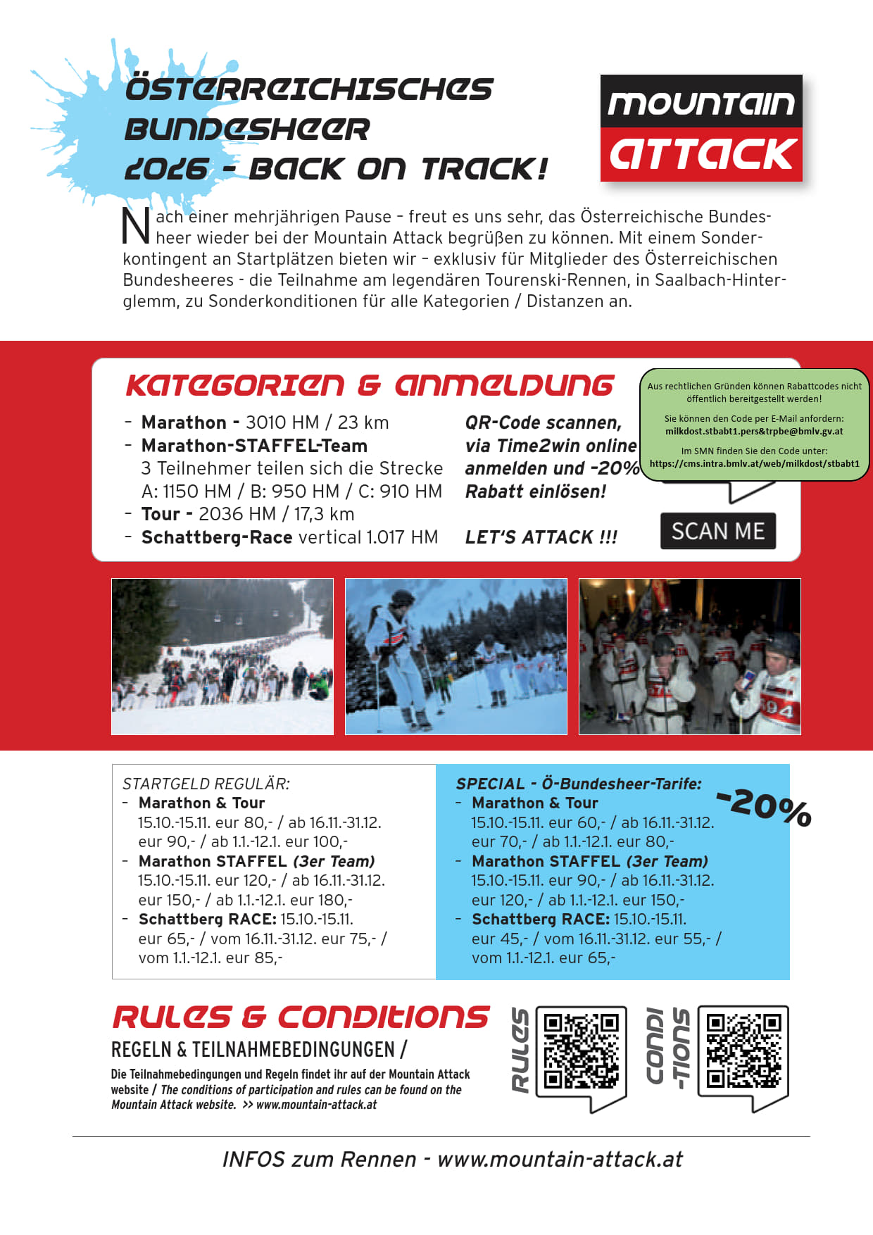Mountain Attack am 16.01.2026 in SAALBACH HINTERGLEMM;ERMÄSSIGUNG für alle Mitglieder des Österreichischen Bundesheeres iIn allen Kategorien:- MARATHON- MARATHON STAFFEL- TOUR- SCHATTBERG-RACEINFOS zum ...