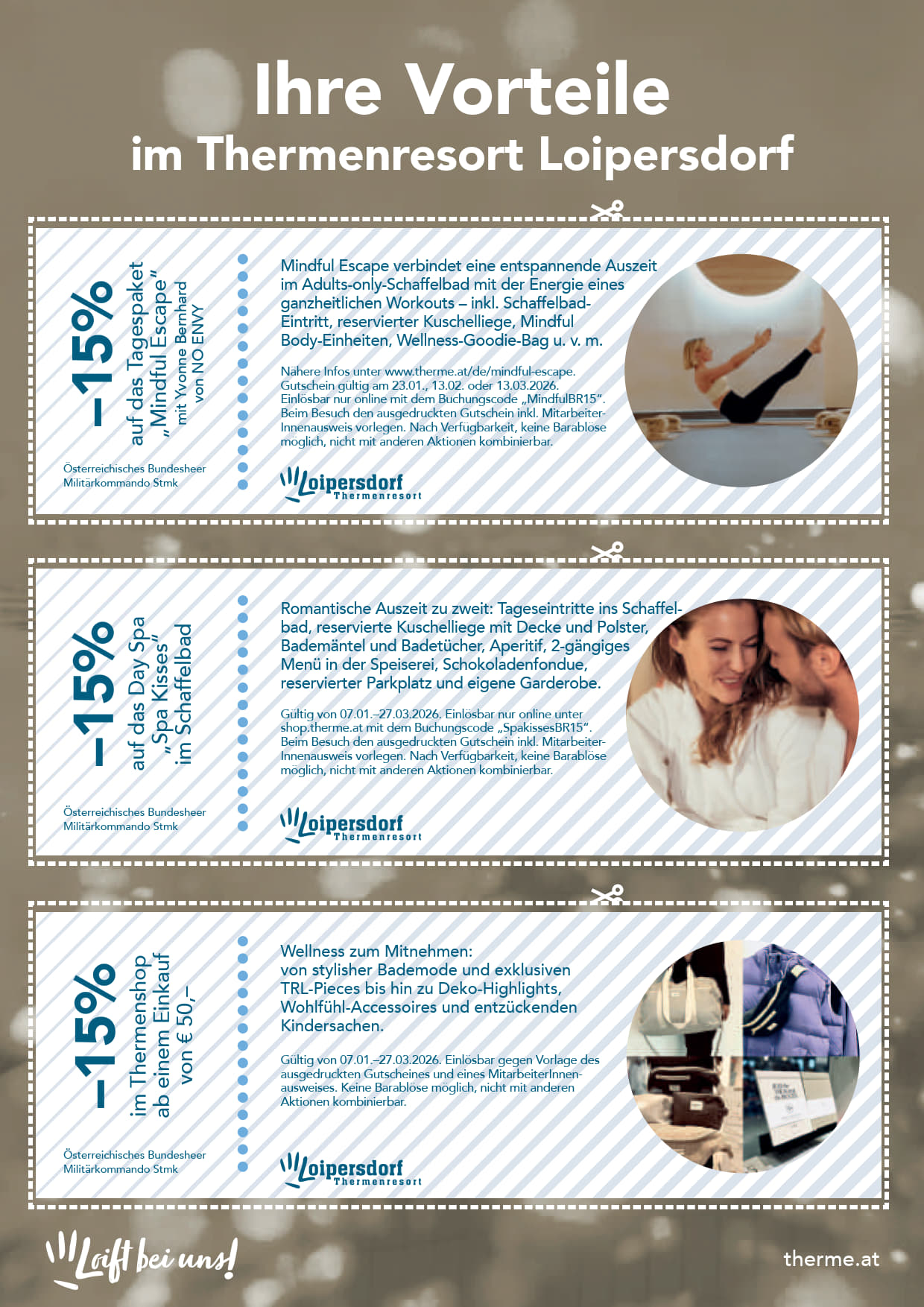 Thermenresort Loipersdorf;15% Ermäßigung gegen Vorlage Wehr-/Dienstausweis + ausgedruckter Gutschein