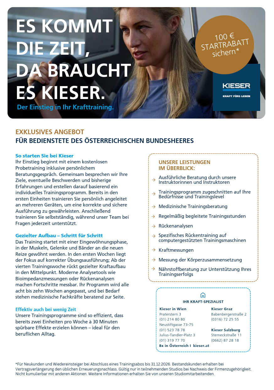Angebot fur die Bediensteten des ÖBH für die Standorte STEGERSBACH und GÜSSING.mehr erfahren
